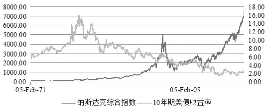 统计发现,纳斯达克综合指数和10年期美债收益率1971年1月5日至2018年2月26日呈现-0.75的相关性,在美债收益率上到一定极限的情况下,美股必然会迎来大幅度调整或者泡沫破灭进入熊市。